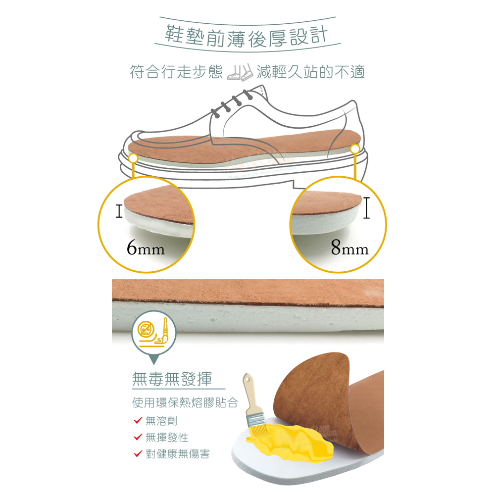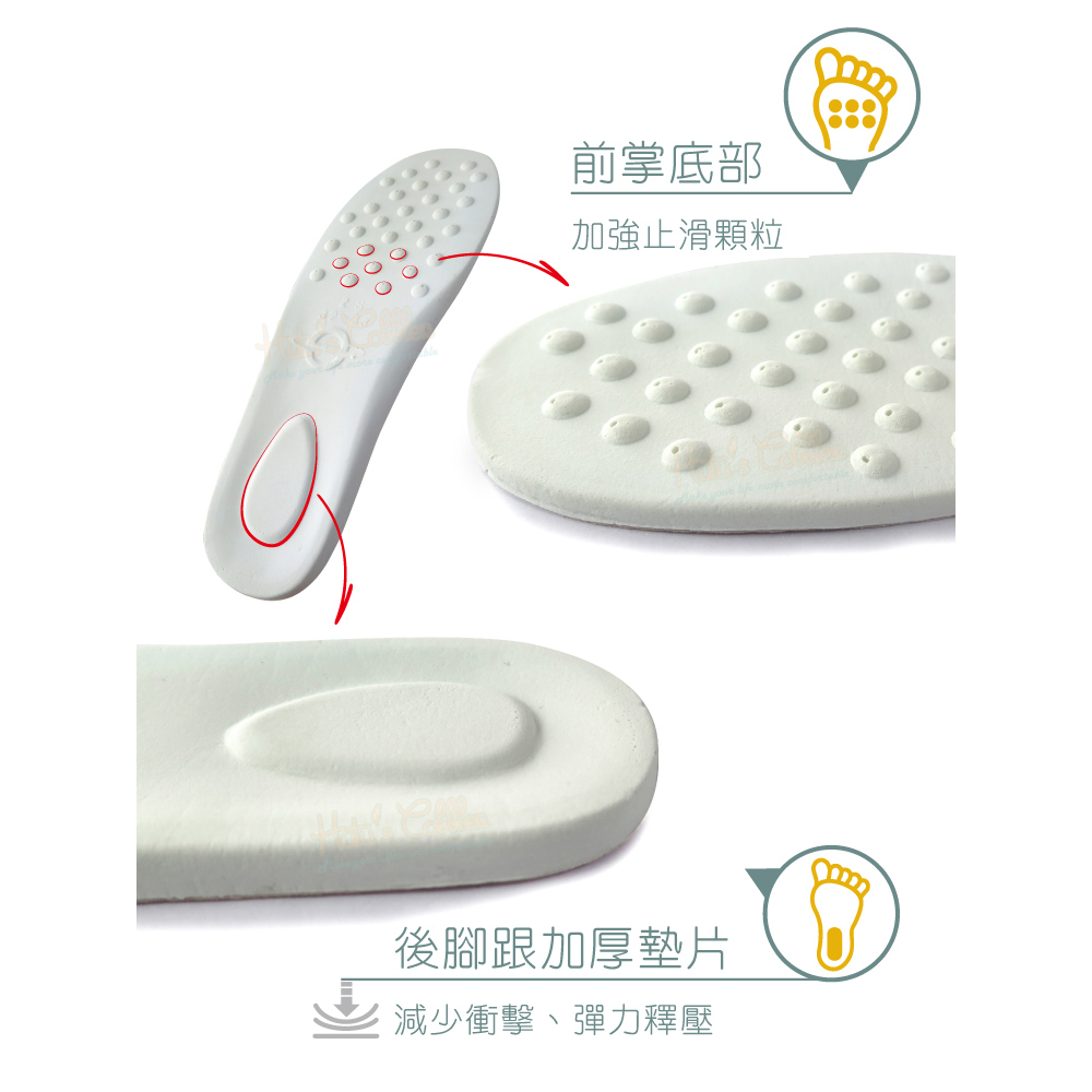 🔸鞋墊前薄後厚設計,符合行走步態,減輕久站的不適