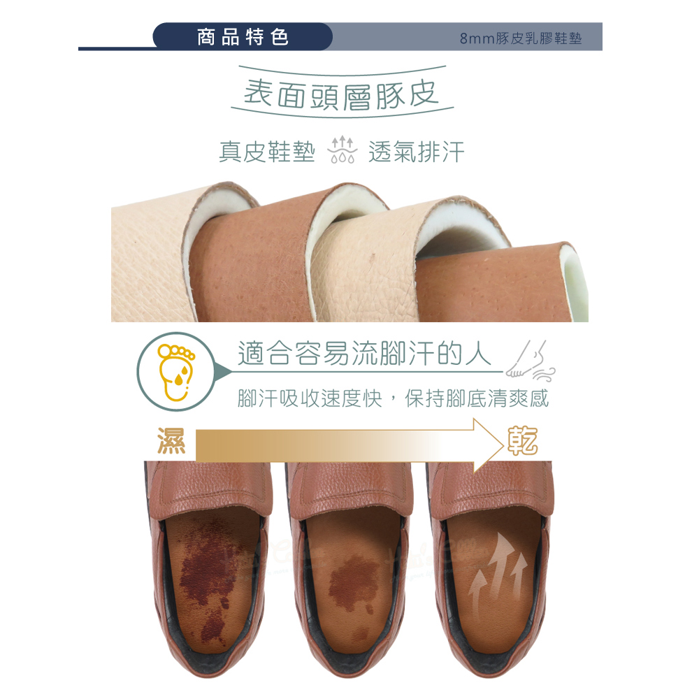 🔸表面頭層豚皮:真皮鞋墊,透氣排汗