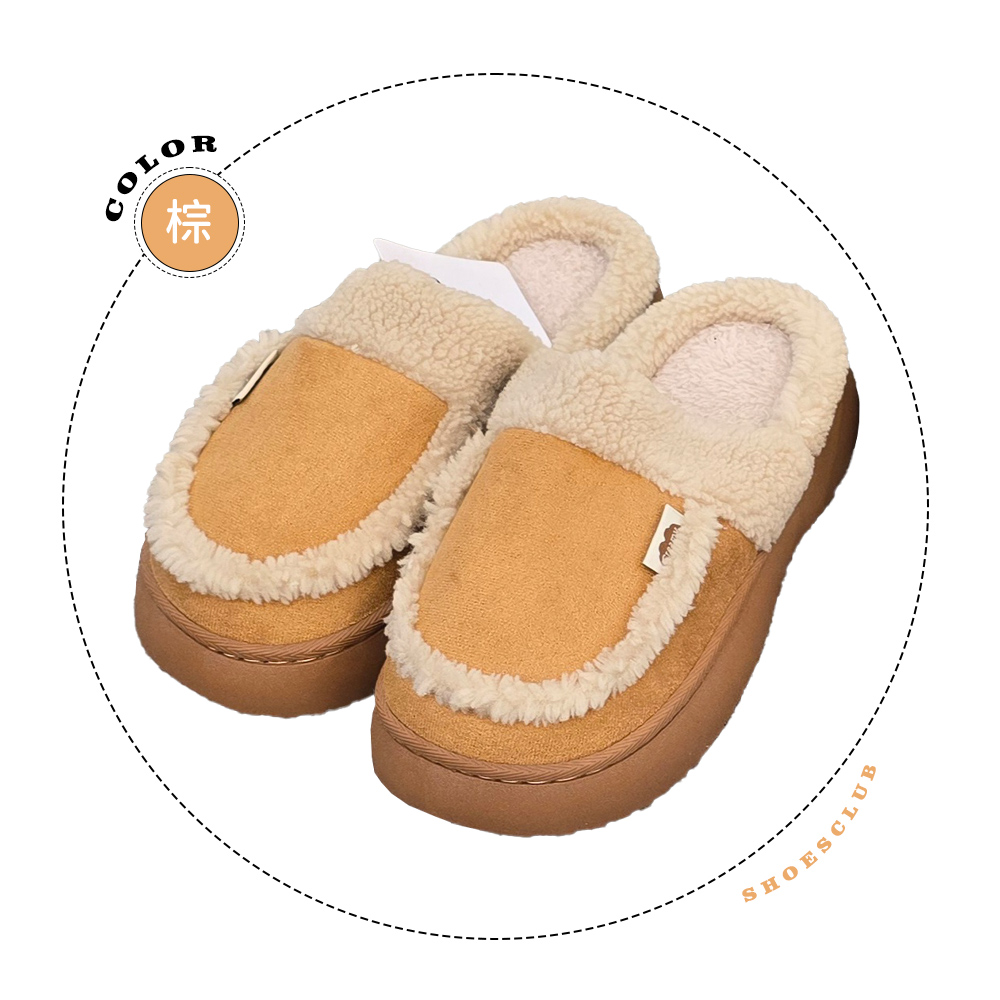 鞋鞋俱樂部 冬季保暖防滑厚底毛絨拖鞋 居家毛毛拖 女鞋 棕/米 068-7-582