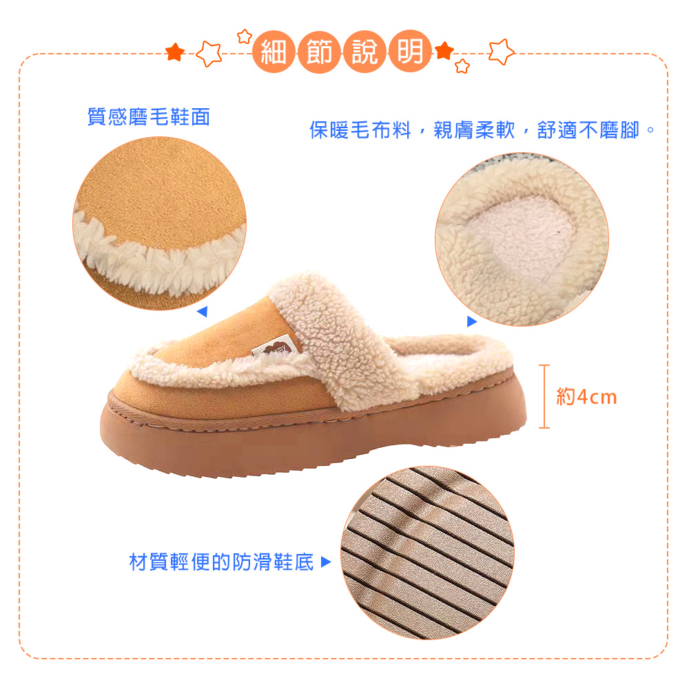 柔軟毛絨內裡+防滑EVA厚底,從腳開始暖到心 💕