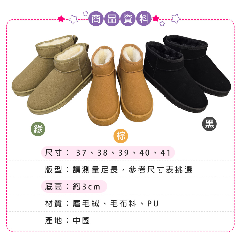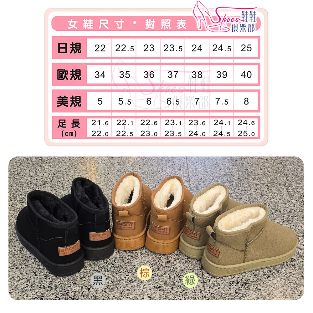 鞋鞋俱樂部 冬季經典素面保暖絨毛短靴 雪地靴 雪靴 女鞋 黑/棕/綠 068-527-3