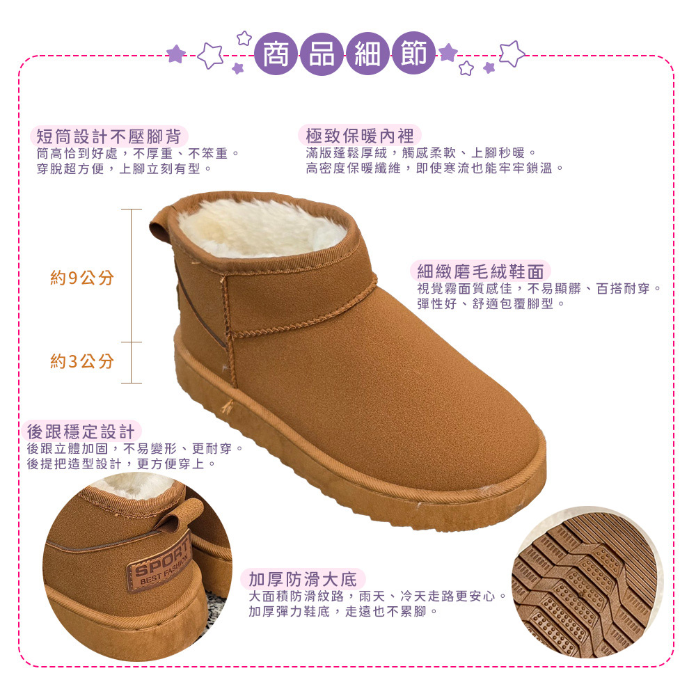 柔軟厚毛內裡:保暖度升級,踩起來像走在棉花上。