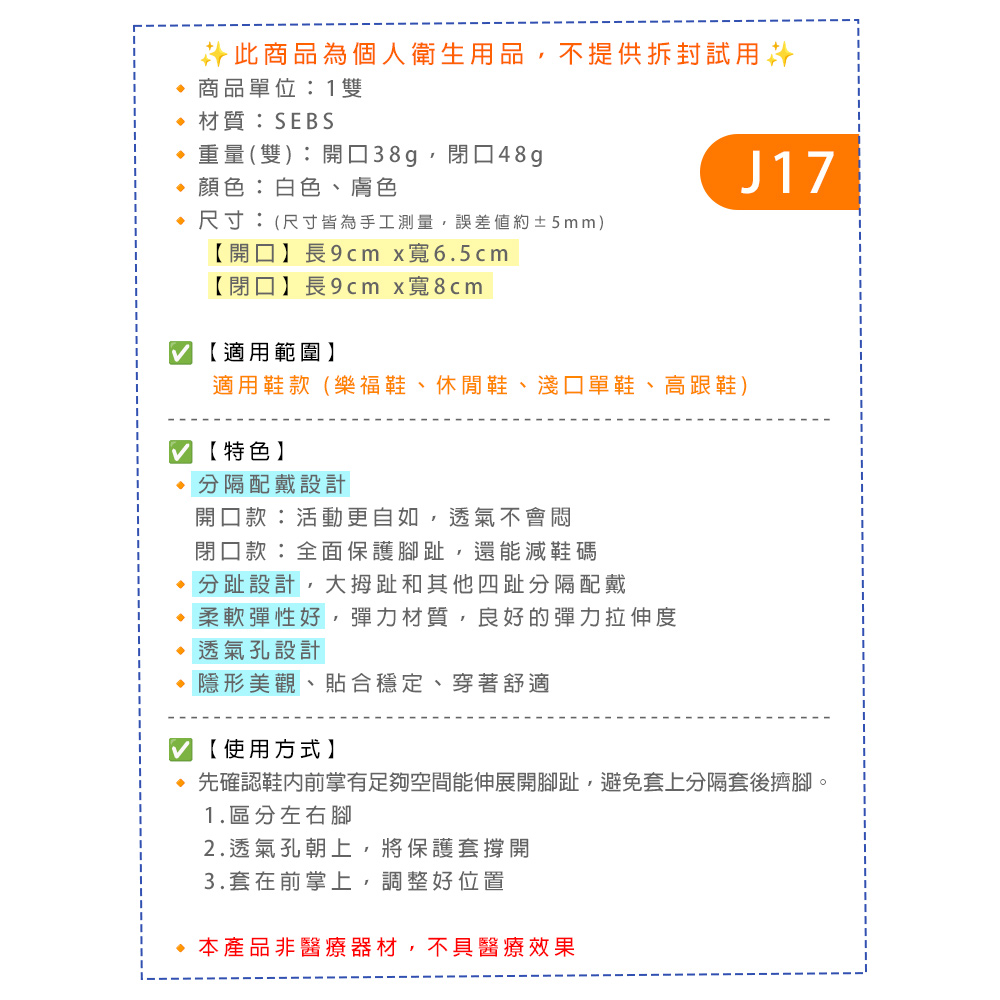 🔸先確認鞋內前掌有足夠空間能伸展開腳趾,避免套上分隔套後擠腳。