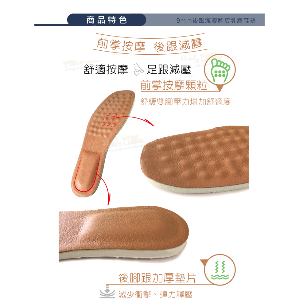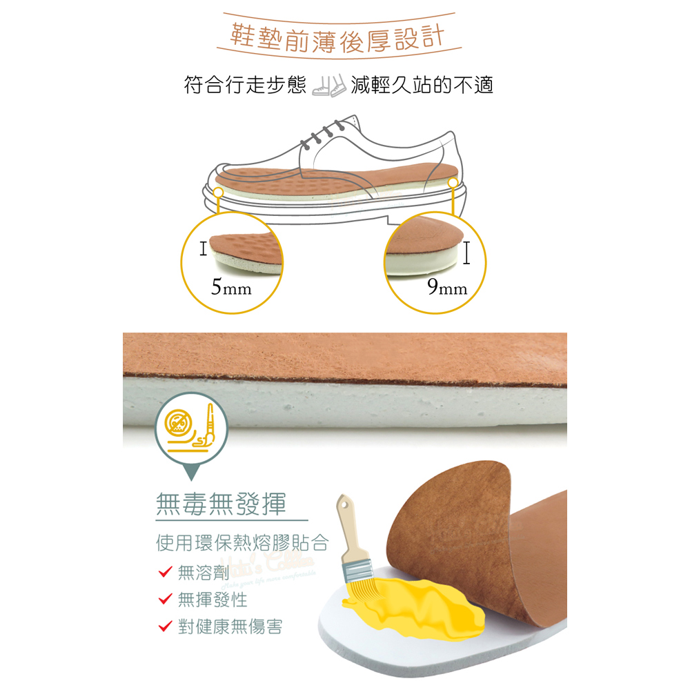 🔸鞋墊前薄後厚設計,符合行走步態,減輕久站的不適