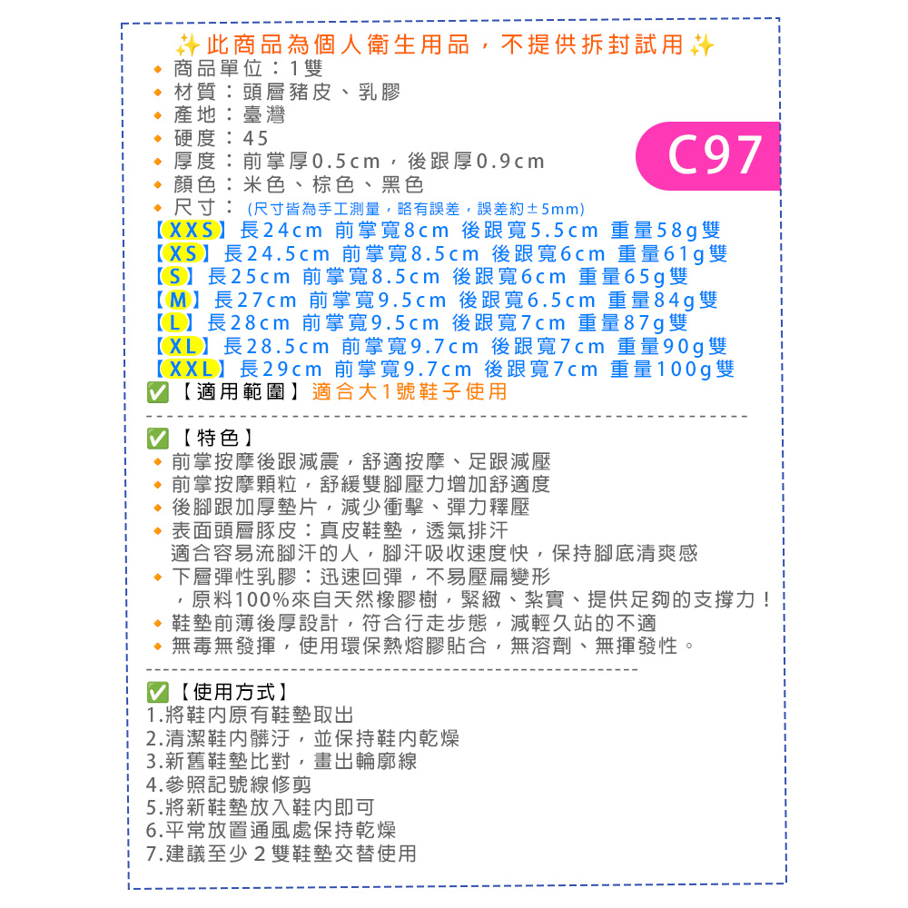 🔸厚度:前掌厚0.5cm,後跟厚0.9cm