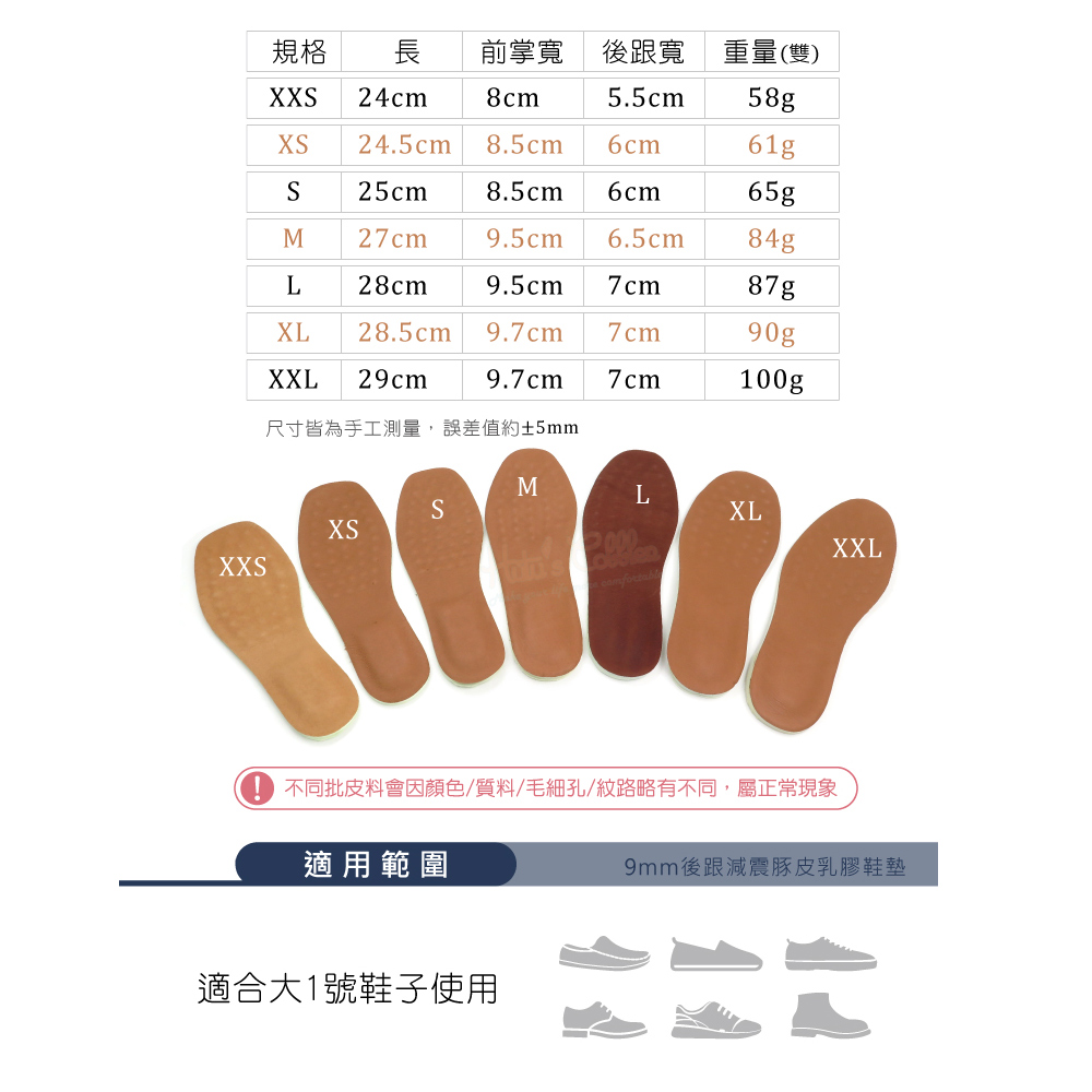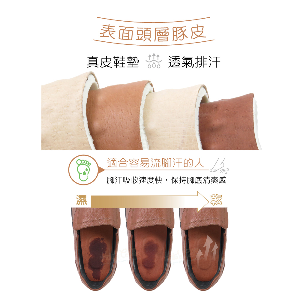 🔸表面頭層豚皮:真皮鞋墊,透氣排汗