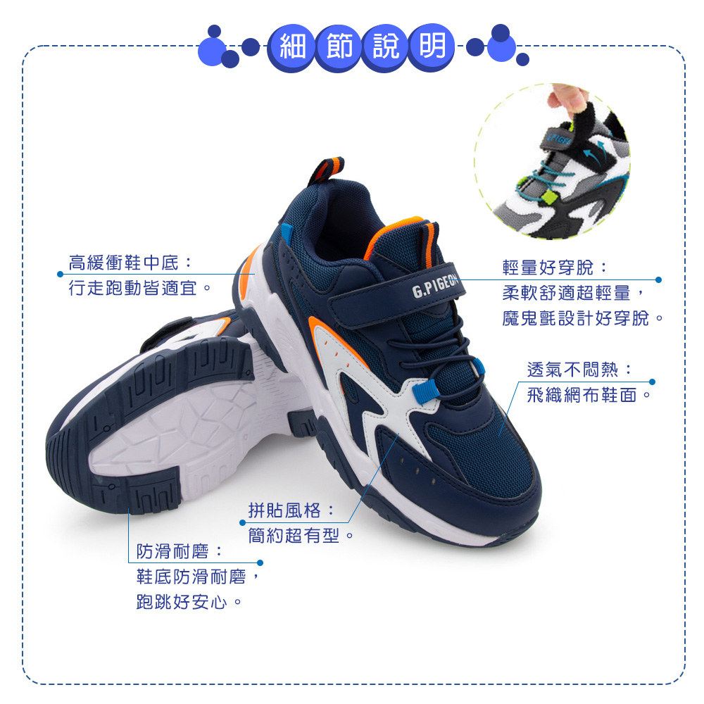 G.P 拼貼風兒童運動休閒鞋 童鞋 藍/粉/綠 255-P0661B 鞋鞋俱樂部
