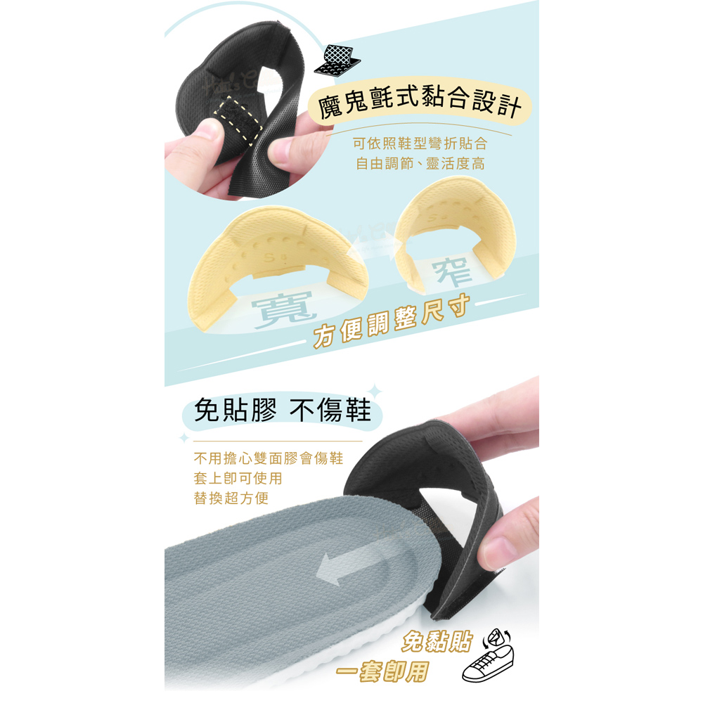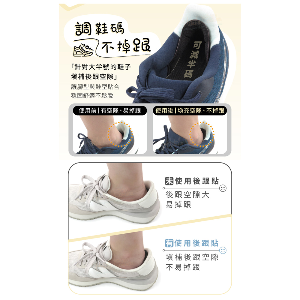 針對大半號的鞋子填補後跟空隙,讓腳型與鞋型貼合,穩固舒適不鬆脫
