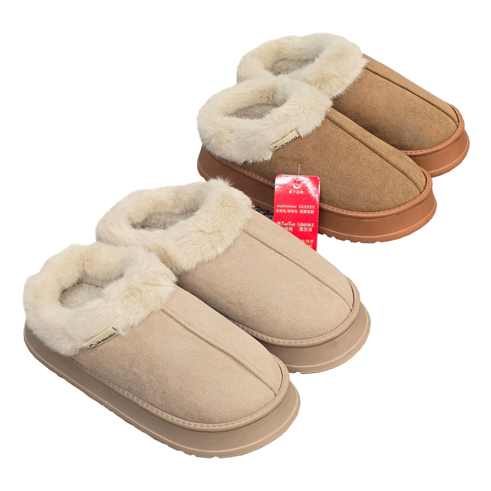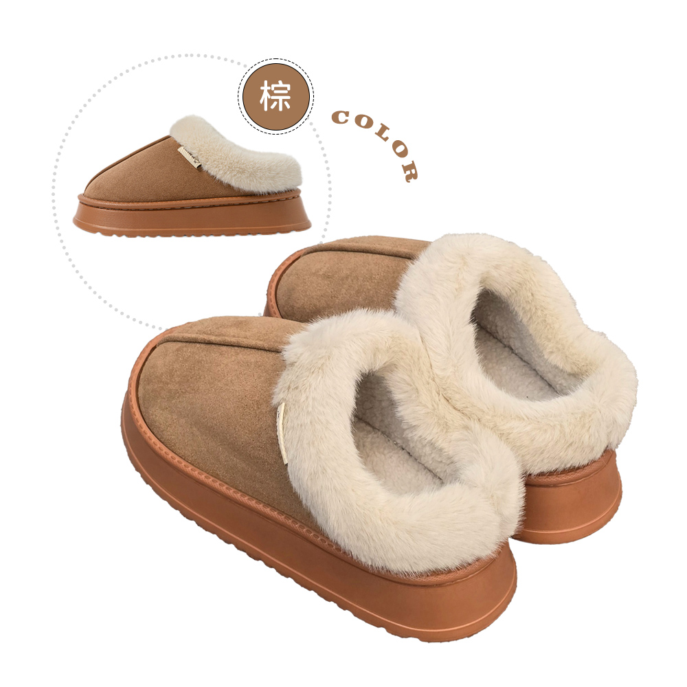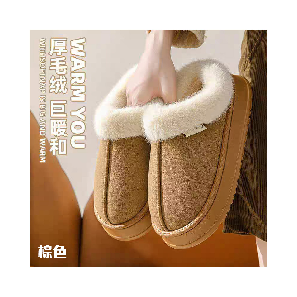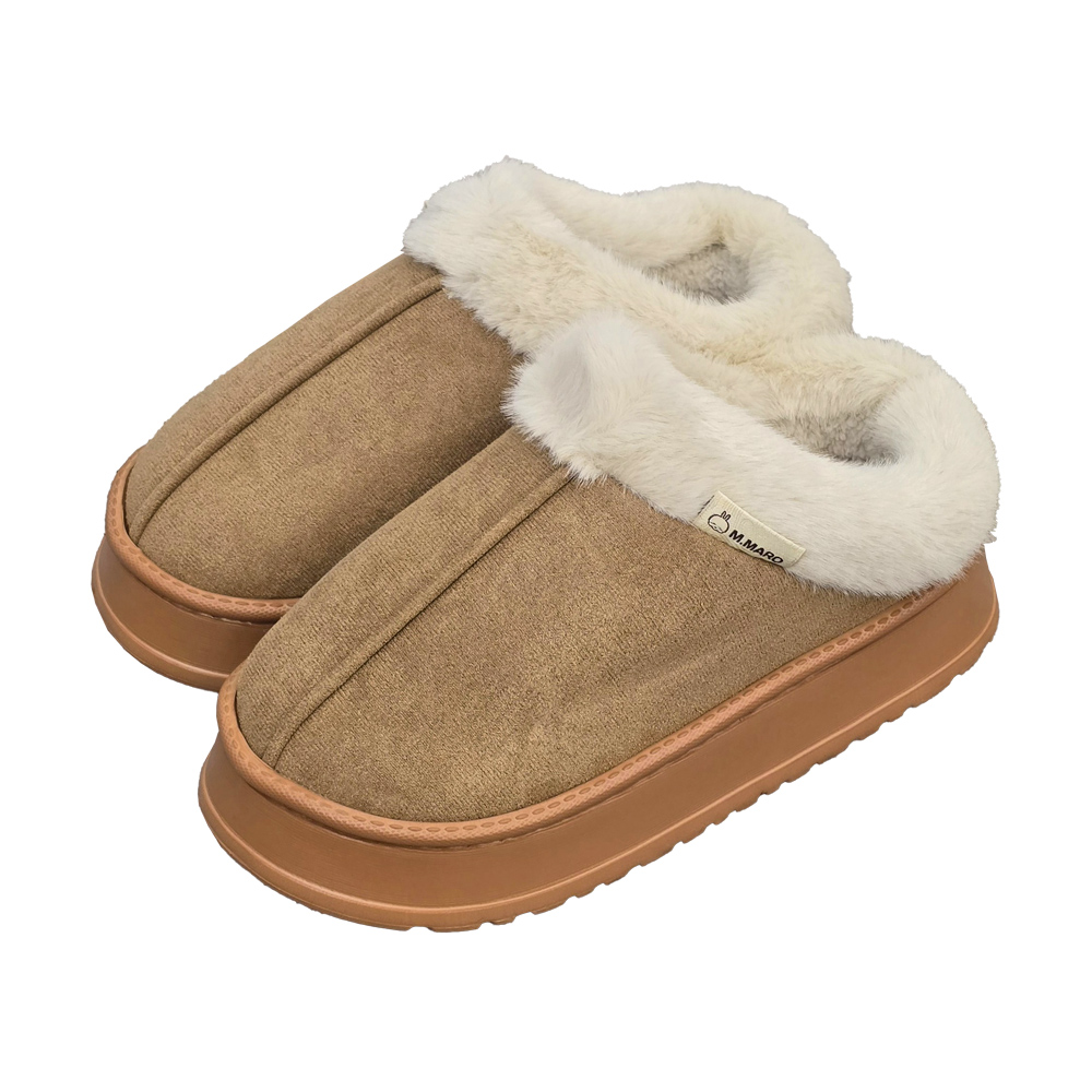 鞋鞋俱樂部 冬季保暖防滑厚底毛絨拖鞋 居家毛毛拖 女鞋 棕/杏 068-3072