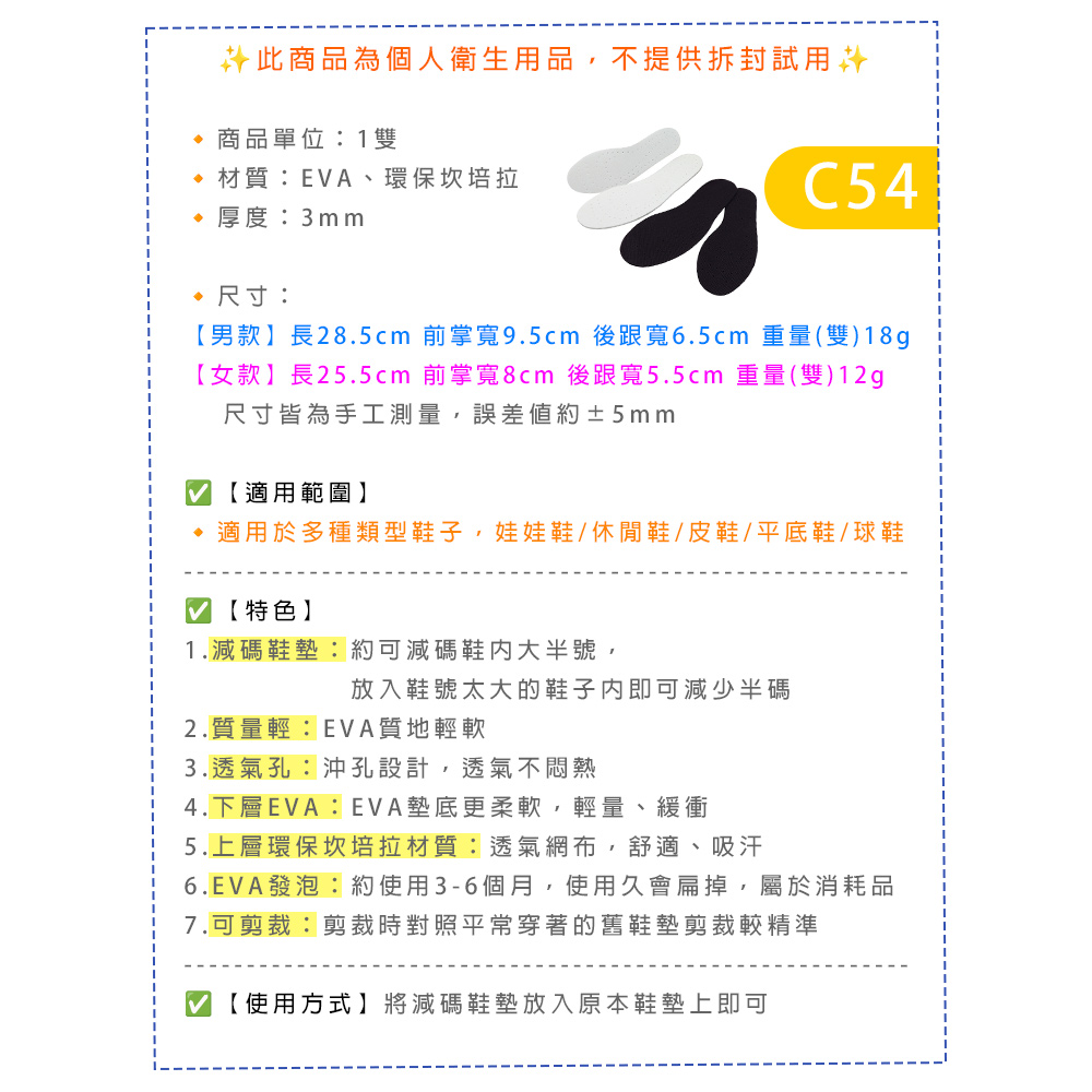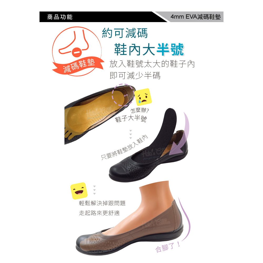 1.減碼鞋墊:約可減碼鞋內大半號,放入鞋號太大的鞋子內即可減少半碼