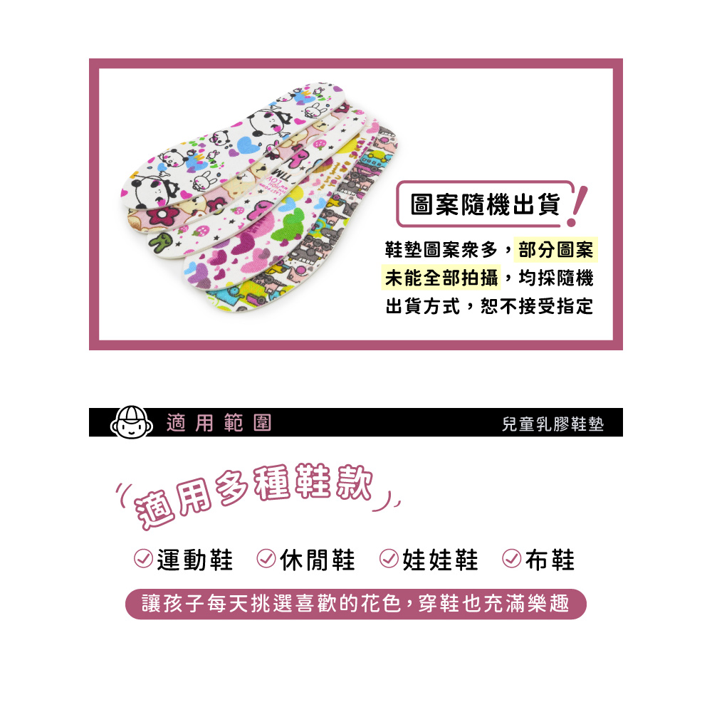 鞋鞋俱樂部 兒童乳膠鞋墊 1雙 906-C48 圖案隨機出貨 不挑款